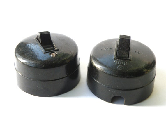 Vintage 1940s Electric Light Switch Set Of 2 Soviet Bakelite Carbolite Light Switch Usable Retro Black Electric Siwtch Industrial Decor